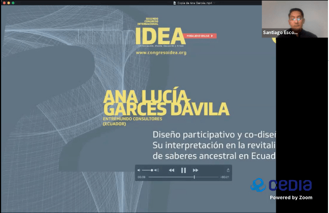 Octubre 2020. En el Congreso IDEA2020 organizado por la Universidad de Cuenca, Ecuador, se presentó la ponencia sobre el aporte del diseño participativo y co-diseño, en la revitalización de saberes ancestrales en Ecuador y sus resultados en el desarrollo de una educación comunal e intercultural.